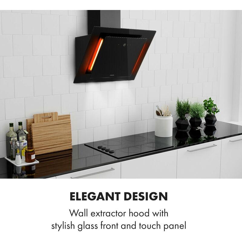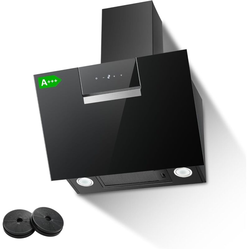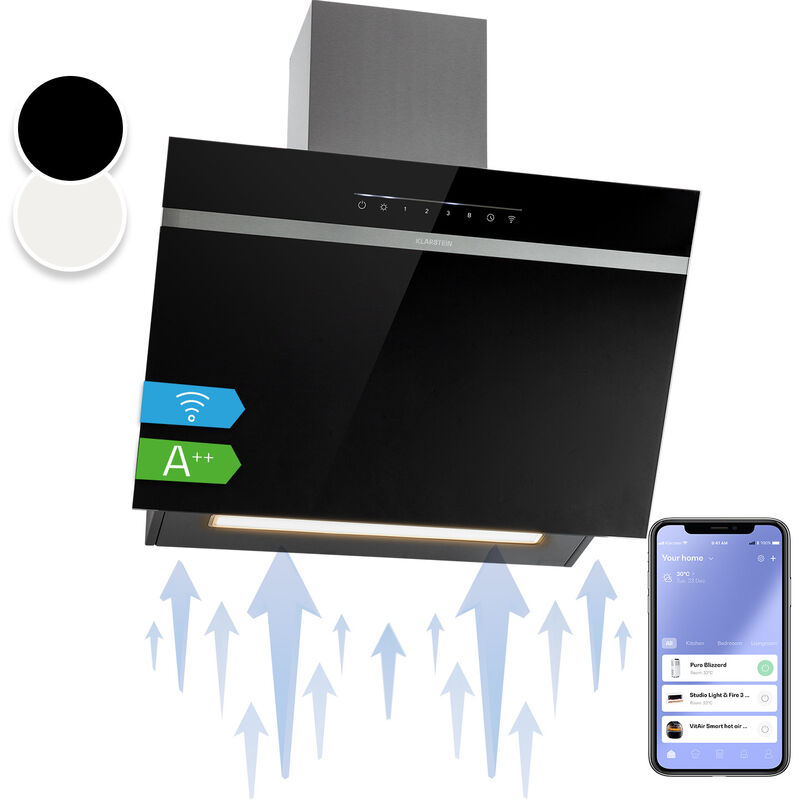 Klarstein – Hotte aspirante inclinée 60cm – Débit d'air 586m³/h – Écran tactile – 3 niveaux d'intensité – Filtre en aluminium lavable