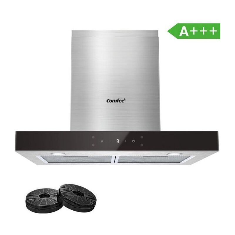 Hotte Aspirante Inclinée 60cm Comfee 380m³/h - Classe a+ - Commandes Sensitive - 3 Vitesses - 2 Filtres à Charbon -Verre Noir