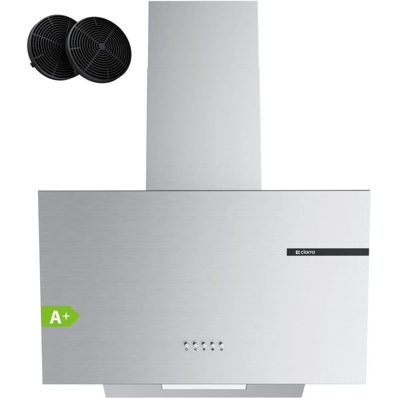Ciarra – Hotte aspirante inclinée 60cm 580m³/h – Mode évacuation ou recyclage – Classe A+ – Tactile – Niveau sonore 65 dB(A) – CD6765CS