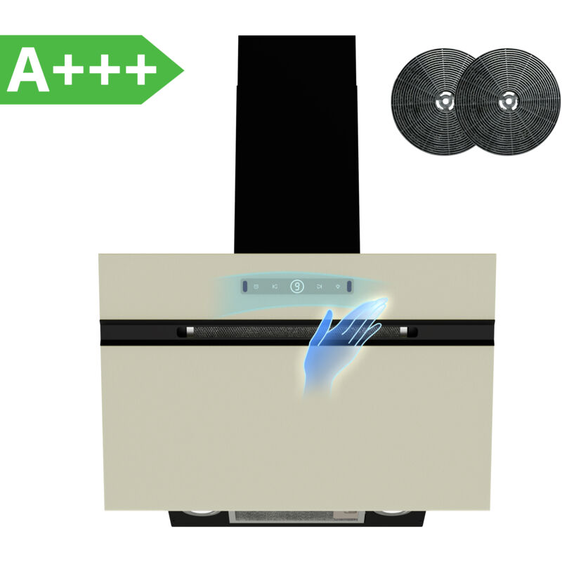 Gasland Chef AR60BS Hotte aspirante sans tête 60cm, Hottes aspirantes silencieuses, évacuation d'air EEK A++, 577 m³/h, Verre noir 9 niveaux Touch Control montage mural hotte avec filtre