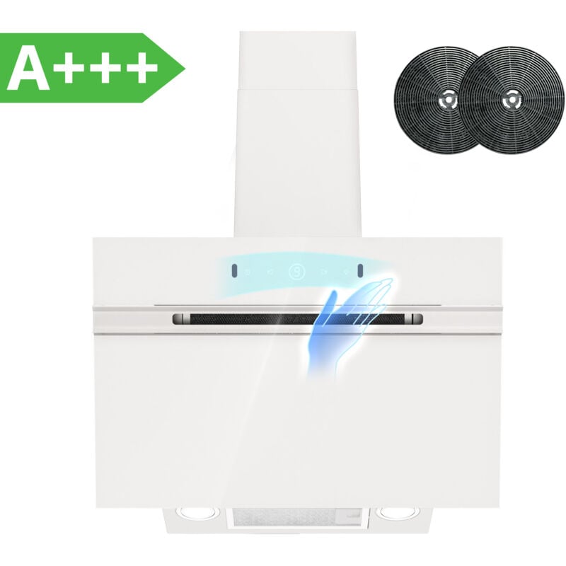 Firegas - Hotte Aspirante inclinée 60cm, 680m³/h,Classe a+++, 9 Vitesses,BLDC Moteur,Evacuation &Recyclage, Geste + toucher,Blanc