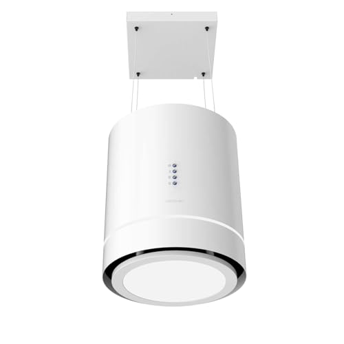 Cecotec Hotte aspirante 44cm îlot rond Bolero Flux Cre 448000 White A++. Finition Blanche, Aspiration 800M3/H, Moteur 210W, Commande Electronique, Lumière, Filtre à Charbon
