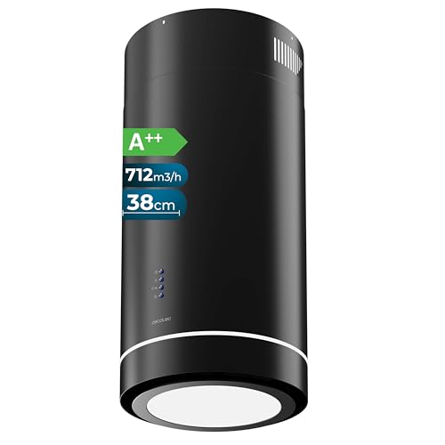 Cecotec Hotte Aspirante 38cm îlot Rond Bolero Flux Ire 388000 Black A++. Finition Noire, Aspiration 800M3/H, Moteur 210W, Commande Electronique, Panneau Led, Filtre à Charbon