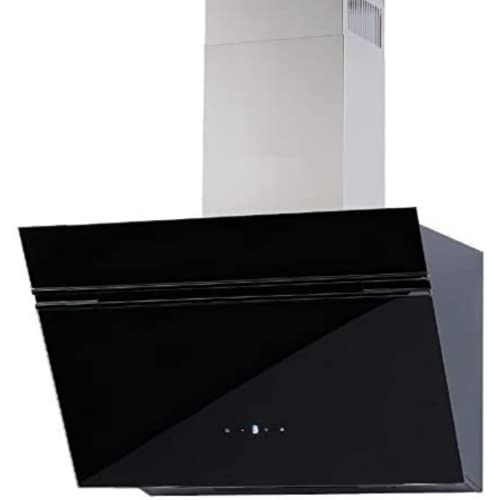 COMFEE' ANGJ64B-60 Hotte aspirante inclinée 60 cm en Verre Trempé, 3 Niveaux de Vitesse, Écran Tactile LED, Recycle interne ou Évacuation extérieure, 60 cm - Noir