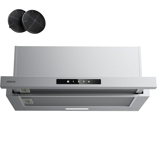CIARRA CBCS6909A Hotte Encastrable 60cm 600 m³/h A+ Hotte Plate Intégrée 3 Vitesses avec Filtre à Charbon CBCF055, Commande Tactile, Inox