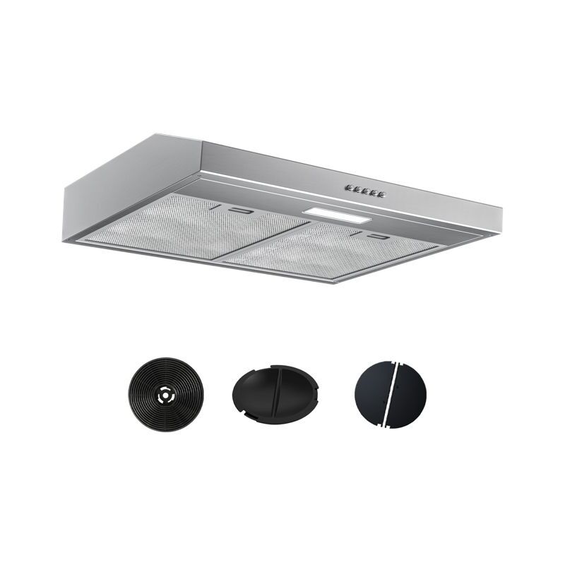 FIREGAS Hotte Aspirante 60cm, Extracteur de Cuisine Sans Évacuation, 3 Vitesses, Filtres en Aluminium Lavables, Filtres à Charbon inclus, Argent