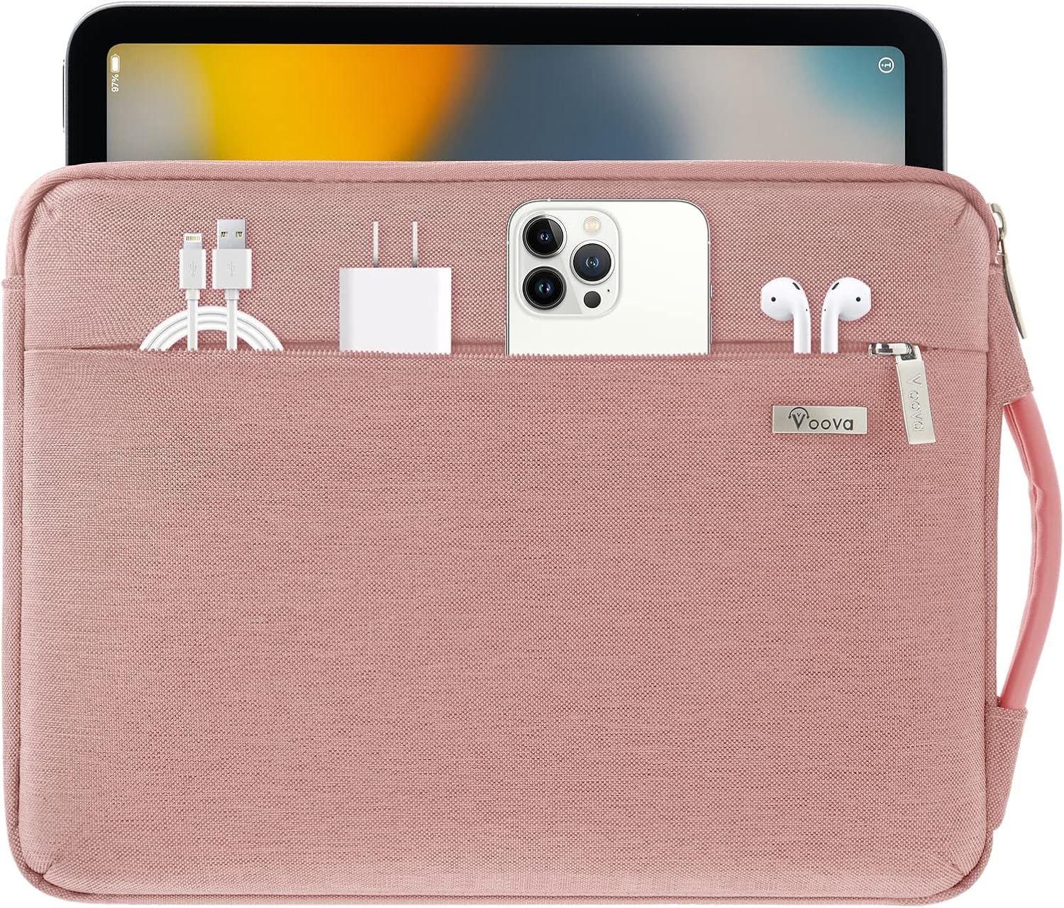 iCozzier Sacoche à bandoulière pour ordinateur portable 11-11.6 pouces Poignée Accessoires électroniques Organizer Messenger Housse de transport avec bandoulière et bandoulière - Rose
