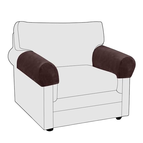 BXFUL Lot de 2 Housse Accoudoir Canapé en Velours, Housses de Bras Extensibles pour Fauteuils, Housses Antidérapantes pour Chaise et Canapé Protecteurs pour Meubles (Marron,Lot de 2)