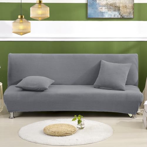 SUIOKPO Housse pour Canapé-Lit Futon sans Accoudoirs Pliant 2 À 3 Places Antidérapante Et Extensible, Imperméable 3 Place Housse Accoudoir Canapé Housse Housse Protection,Light Grey,S