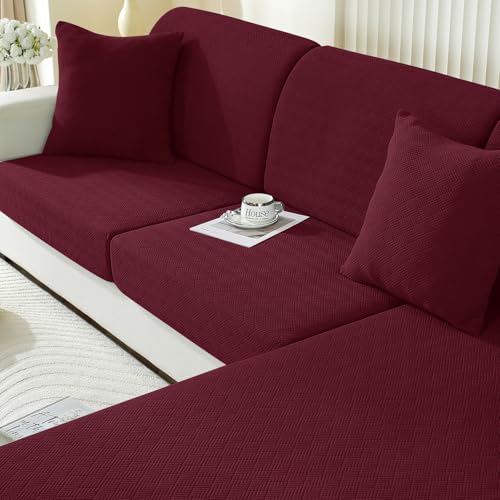 Ystyle Housse Assise Canapé Extensible, Antidérapante Housse Coussin Canape, Universelle Housse pour Les Coussin De Canape, Housse Dossier Canapé Chiens (1 Place*3+Chaise Longue, Bourgogne)