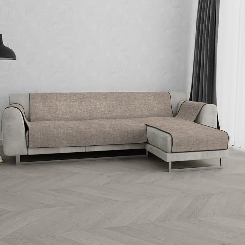 Housse de canapé antidérapante Comfort avec péninsule Droite et Couvre-accoudoirs latéraux, fabriquée en Italie, Assise Housse de canapé 190 cm - Marron
