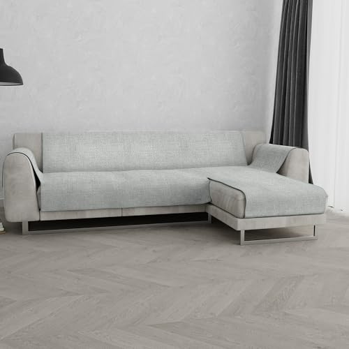 Housse de canapé antidérapante Comfort avec péninsule Droite et Couvre-accoudoirs latéraux, fabriquée en Italie, Assise Housse de canapé 290 cm - Gris Clair