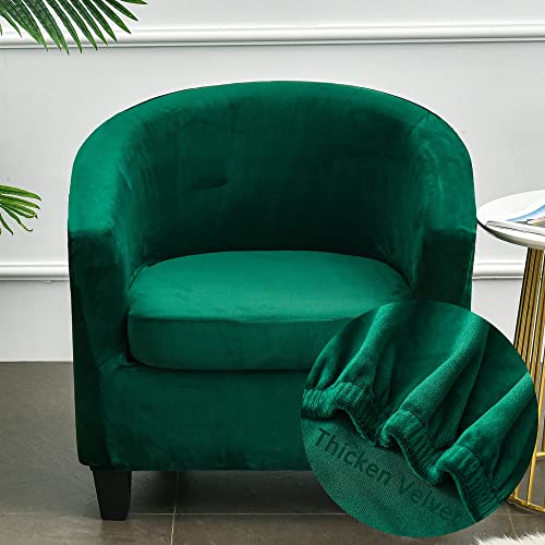 FANSU Velvet Housse de Fauteuil Cabriolet Chesterfield Extensible 2-Pièces, Elegant Couleur Unie Couverture de Fauteuil Antidérapant, Tub Chair Housse de Canapé avec Housse de Coussin (Vert foncé)