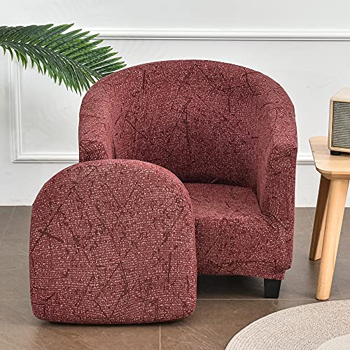TOPCHANCES Velours Housse de Fauteuil Club 2 Pièces Extensible Jacquard Housse Salon Fauteuil Cabriolet Tub Chair avec Coussin (Rouge foncé)
