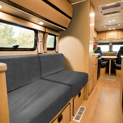 SYLC Housse De Coussin De Siège De Caravane, Velours Housse Banquette Camping Car, Housse De Coussin De Canapé Caravane Extensible (Gray,Rectangle L)