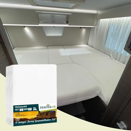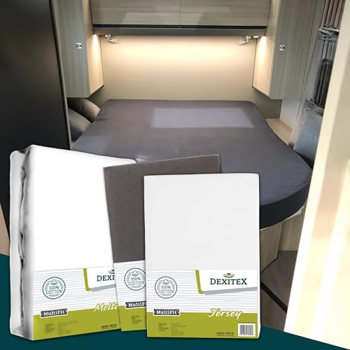 Dexitex - Drap-Housse en Jersey Camping Car - Caravane Matelas - Lit Caravane - pour Camping Car Matelas - Oeko-Tex - 100% Coton - Angle Gauche - Blanc - (135-160cmx190-210cm)