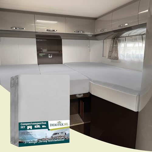 Dexitex - Lot de 3 draps-housses pour camping-car et caravane - Lits simples - Gris - Drap-housse camping-car 3 pièces - Pour camping-car - Certifié Oeko-Tex - 100 % coton