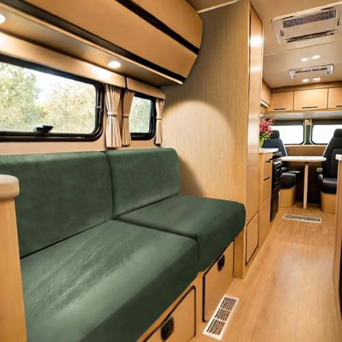 SYLC Housse De Coussin De Siège De Caravane, Velours Housse Banquette Camping Car, Housse De Coussin De Canapé Caravane Extensible (Green,Rectangle L)