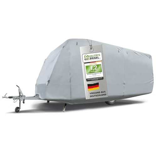 WALSER Premium Bâche pour Caravane, Housse de protection imperméable et Anti-UV pour caravane, Housse pour Camping-Car, Couverture de Caravane 100% résistante aux intempéries, Taille 2: 470x250x220cm