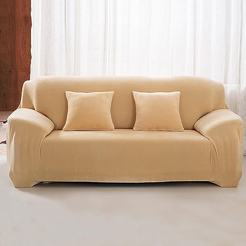Hiseng Élastique Housse de Canapé, Housse Canapé 3 Places, Universel Couvre Canapé avec Accoudoir, Lavable Antidérapante Velours Revêtement de Canapé (Beige,3 Places)