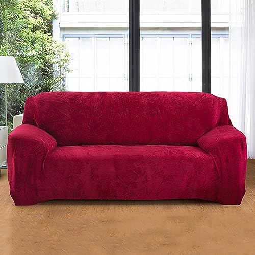 Hiseng Élastique Housse de Canapé, Housse Canapé 3 Places, Universel Couvre Canapé avec Accoudoir, Lavable Antidérapante Velours Revêtement de Canapé (Rouge,3 Places)