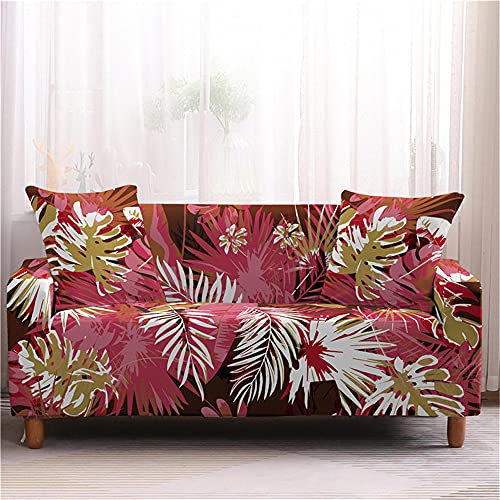 FANSU Housse de Canapé Extensible Universel Décorative, Revêtement de Canapé 3D Spandex à Imprimé Feuille de Palmier avec Accoudoirs, Salon Sofa Protection de Canapé (Rouge,3 Places)