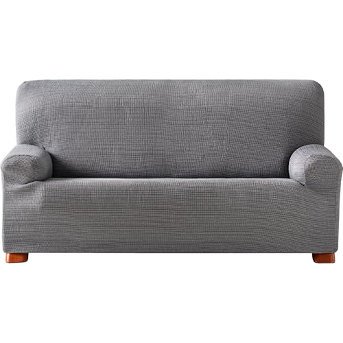 ECOMMERC3 Housse de canapé élastique Jacquard Taille 3 Places, Ajustement Universel et Respirant, Couleur Grise, Protection Anti-Usure, Design antidérapant avec Bande élastique