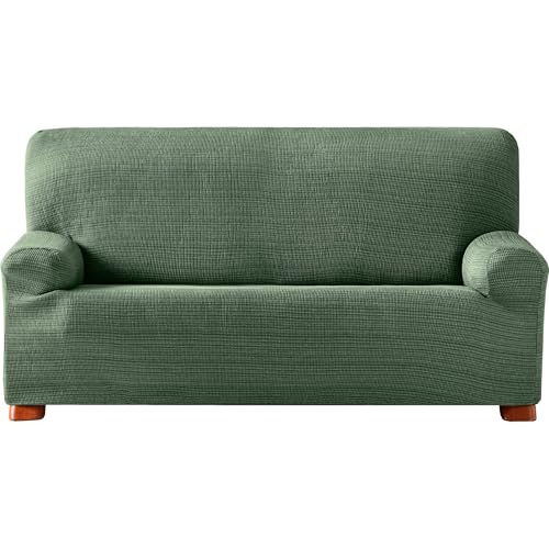 ECOMMERC3 Housse de canapé élastique Jacquard Taille 3 Places, Ajustement Universel et Respirant, Couleur Verte, Protection Anti-Usure, Design antidérapant avec Bande élastique