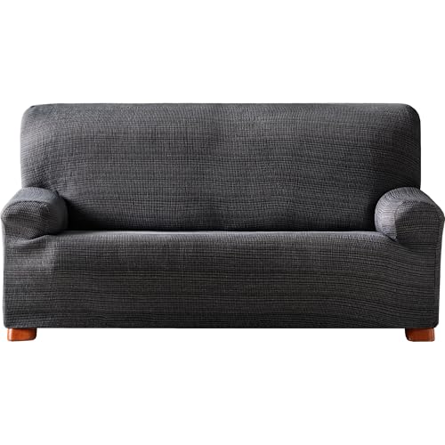 ECOMMERC3 Housse de canapé élastique Jacquard Taille 3 Places, Ajustement Universel et Respirant, Couleur Gris foncé, Protection Anti-Usure, Design antidérapant avec Bande élastique