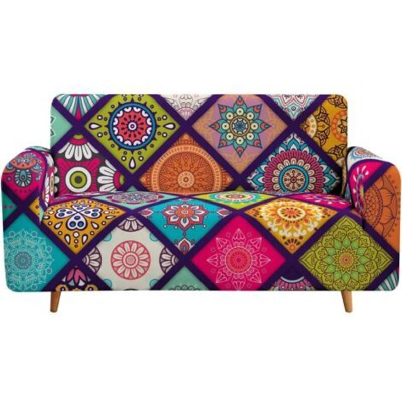 Tr1er Housses de Canapé Extensible, 1 2 3 4 Places Stretch 3D Imprimé Housse de Fauteuil Universel Revêtement de Canapé avec Accoudoirs Couvre Canapé (Style bohème,2 Places(145-185cm))