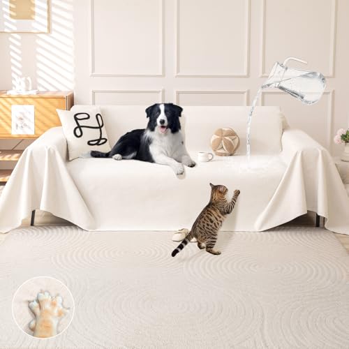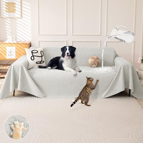 Royhom Protection Canape Chat Anti Griffe, Protege Canape Impermeable, Housse de Canapé 3 Place, Couvre Canapé d'angle, Sofa Cover Antidérapante, Beige, 340x180 cm