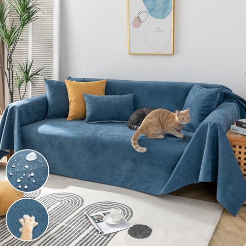 Royhom Protection Canape Chat Anti Griffe, Protege Canape Impermeable, Housse de Canapé 3 Place, Couvre Canapé d'angle, Sofa Cover Antidérapante, Bleu, 340x180 cm