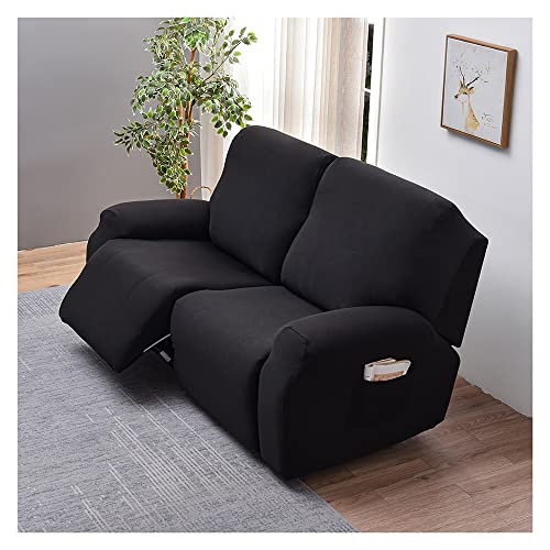 FANSU Housse de Fauteuil Relax Extensible 1 Places, Housse de Fauteuil Relax Inclinable Electrique avec Poche, 6 Pièce Lavable Protege de Meubles pour Canapé Inclinable (Noir,2 Places)
