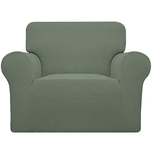 Easy-Going Housse de canapé Extensible – 1 pièce – Housse de canapé Douce avec élastique en Bas pour Enfants, Animaux domestiques – Tissu Jacquard élasthanne à Petits Carreaux (Chaise, Vert grisâtre)