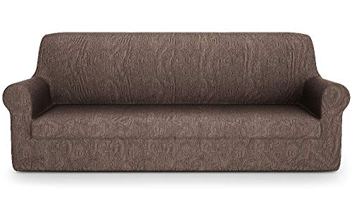 CHUN YI 1 Pièce Jacquard Housse de Canapé Extensible, Revêtement de Canapé (3 Places, Chocolat)