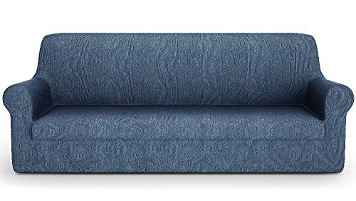 CHUN YI 1 Pièce Jacquard Housse de Canapé Extensible, Revêtement de Canapé (2 Places, Bleu foncé-1)