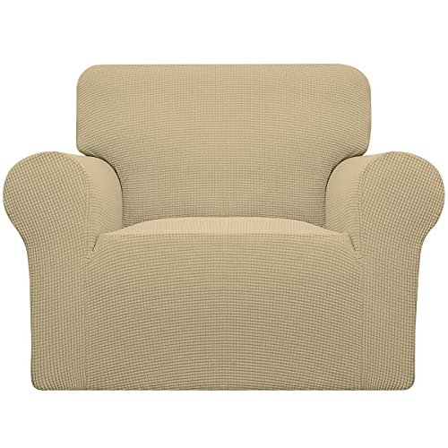 Easy-Going Housse de canapé Extensible 1 pièce pour canapé Doux avec élastique en Bas pour Enfants, Tissu Jacquard élasthanne, Petits Carreaux (Chaise, Beige)