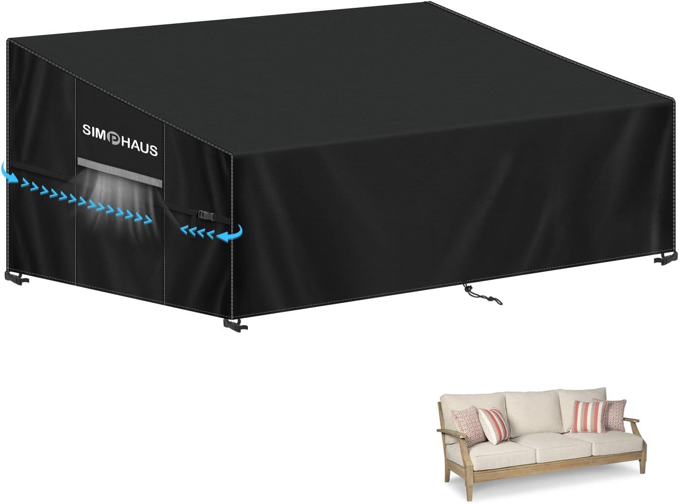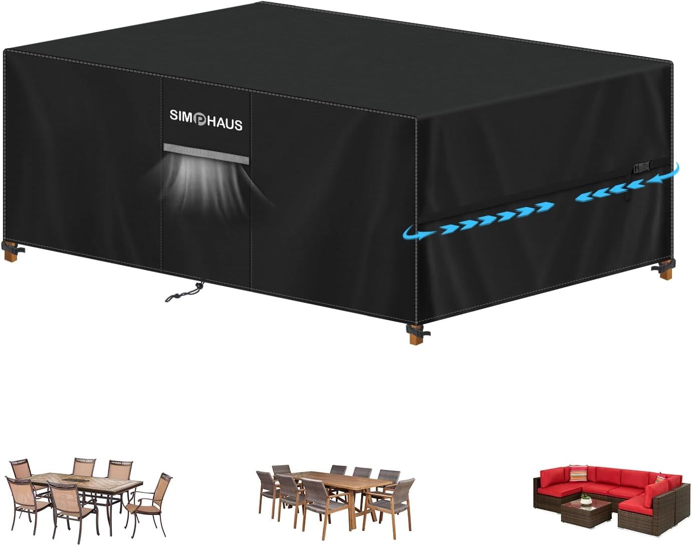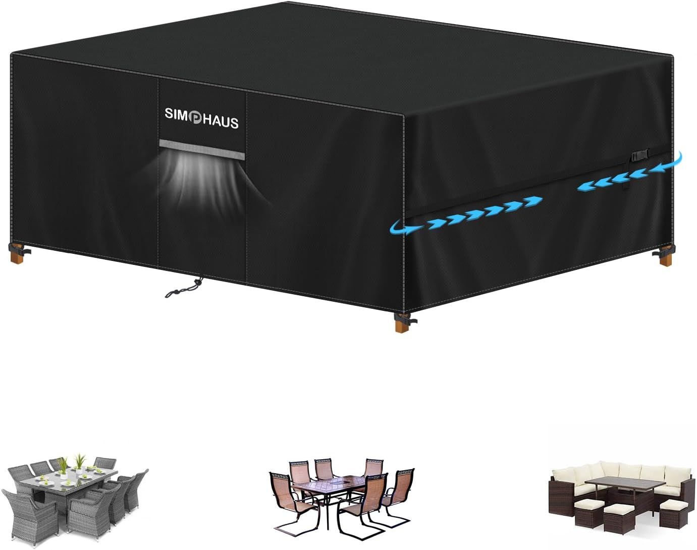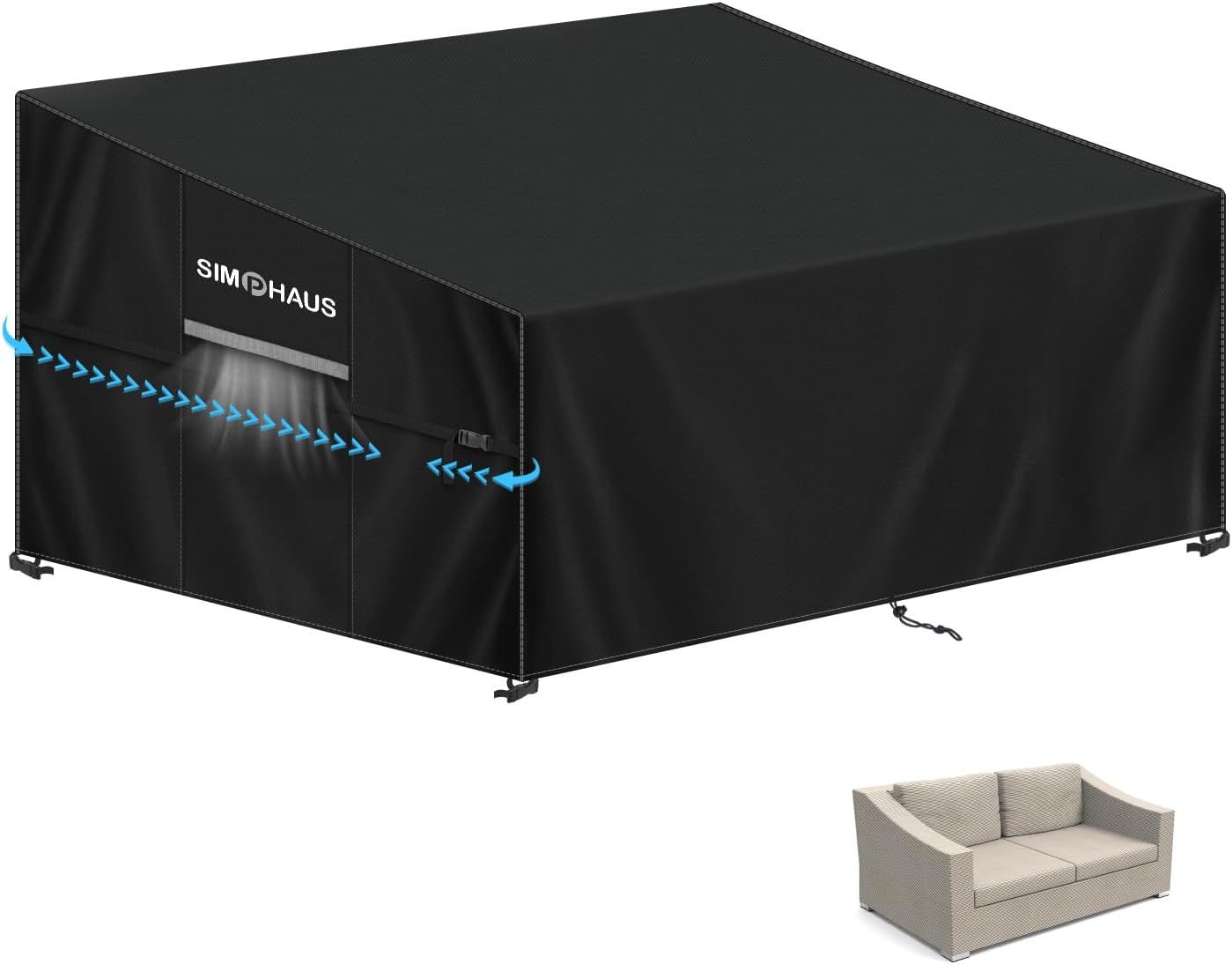 Housse Salon de Jardin 126x126x74 cm, 600D Haute Résistance, Housse Canape de Jardin Exterieur, Coupe-vent, Anti-UV, Housse Table de Jardin avec sorties d'air, Boucles, Cordon Ajustable