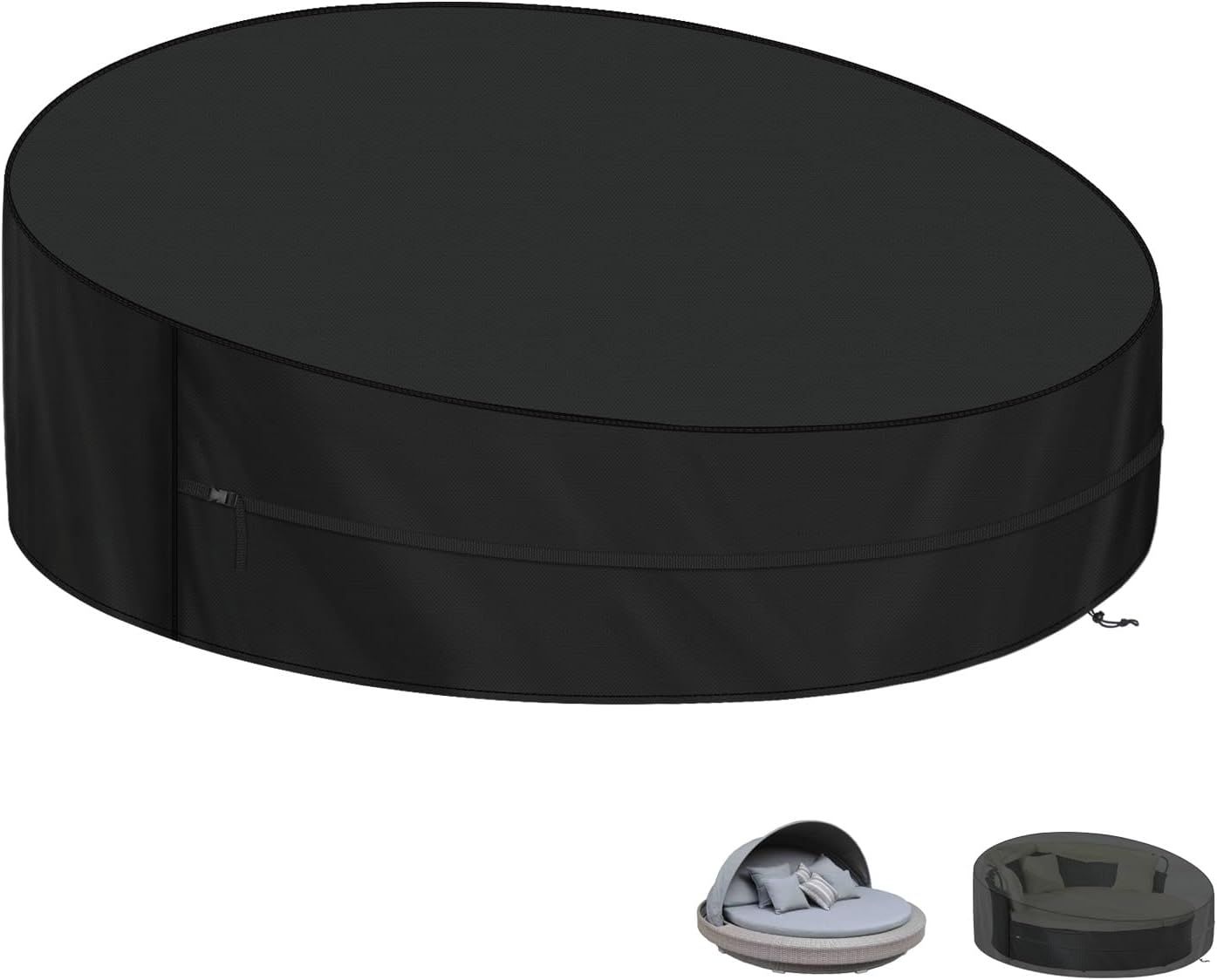 CFUS-Housse de Protection Canapé-lit Rond 165x90/50cm Bâche Lit de Jardin, Housse Imperméable pour Lit de Jardin, Couverture de Lit de Jardin, Anti-UV, 420D Oxford Housse Canape-Lit Exterieur