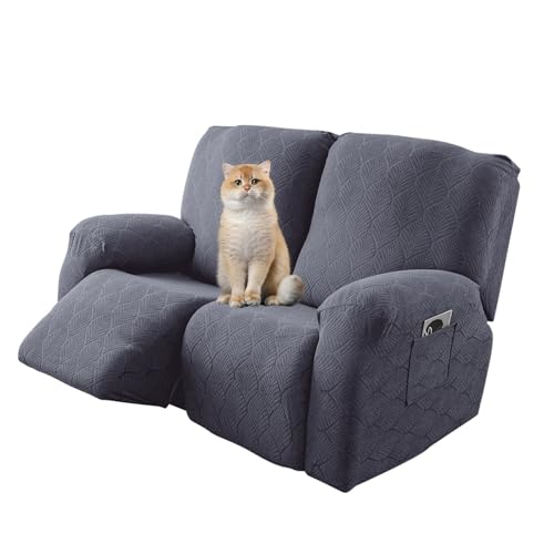 KinCam Housse de Fauteuil Extensible en Jacquard, Housse de Fauteuil Relax avec Poche, Housse Fauteuil Relax pour Chiens et Chats, Douce et Lavable Housse canapé Relax 2 Places Gris foncé