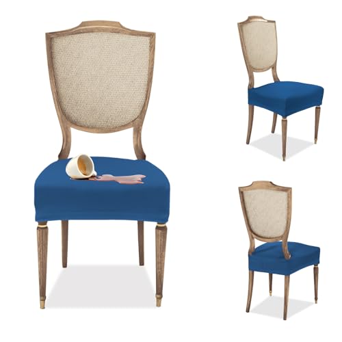 LANSHENG Housse de Chaise 2/4 Pièces Housse de Coussin de Chaise Housse de siège de Chaise imperméable Démontable Housse Assise Chaise Elastique Jacquard Lavables pour Salle à Mange (Bleu Marine, 4)
