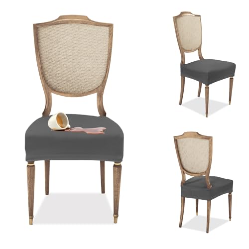 Eozakavod Housse de Chaise 4 Pièces Housse de Coussin de Chaise Housse de Salle à Manger,Démontable Housse Assise Chaise Elastique Jacquard Lavables pour Salle à Mange(Gris Foncé, 4 PCS)-B