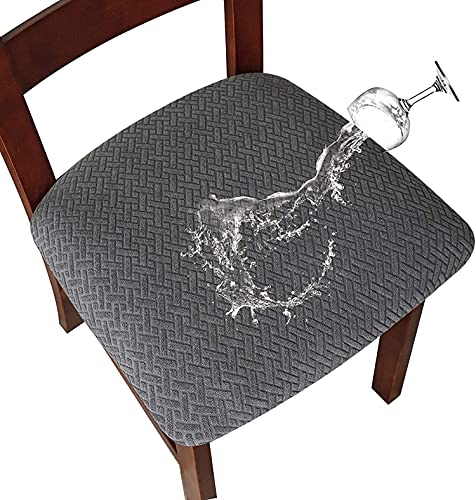 LANSHENG Housse de Chaise 2/4 Pièces Housse de Coussin de Chaise Housse de siège de Chaise imperméable Démontable Housse Assise Chaise Elastique Jacquard Lavables pour Salle à Mange (Gris Foncé, 4)