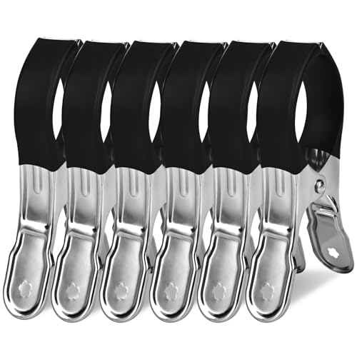 Lot de 6 grandes pinces à serviette géantes pour chaises longues de plage avec housse de protection - Pinces à linge coupe-vent - En métal - Pour le linge, la plage et les vêtements épais