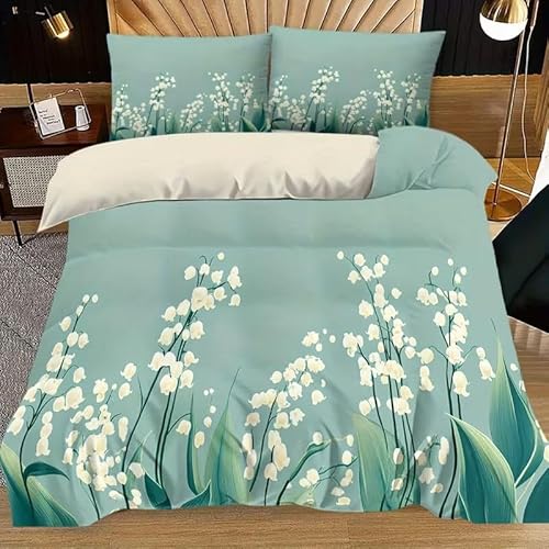 YZQGLHP Housse de Couette 180x200 Floral Housse de Couette Muguet Microfibre 3 Pièces 3D Imprimée Parures de Lit avec Fermeture éclair Housses de Couettes et 2 Taies d'oreiller 65x65 cm