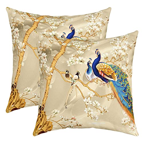 Homemissing Paon mâle Taie d'oreiller 60x60cm Set of Animaux Thèmes Soft B Taie Oreiller pour Canapé Paon mâle Feathers Design Décor Housse Coussin Extérieur Lot De 2 Housse de Coussin