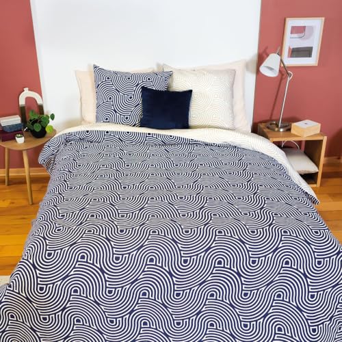 Housse de couette bleu et gris