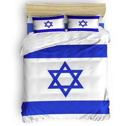 MDKLXIDF Parure de Lit 160x200 Drapeau israélien Housse de Couette en Microfibre, Ensemble de Literie pour Filles Garçon Ado, 3D Imprimé Housse de Couette + 2 Taie d'oreiller 65x65 cm