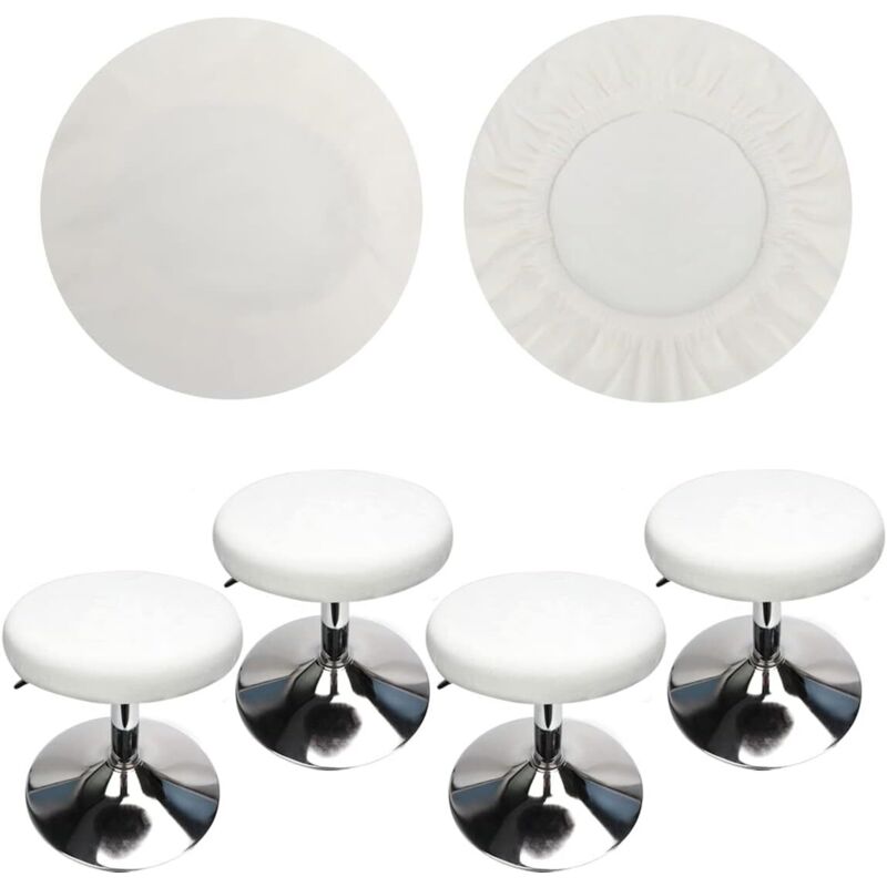 4 Pièces Blanc)Housse Tabouret Rond Housse Tabouret de Bar, Tissu de Luxe, Diamètre 30-40cm, Extensible, Infroissable, Lavable et Anti-Poussière