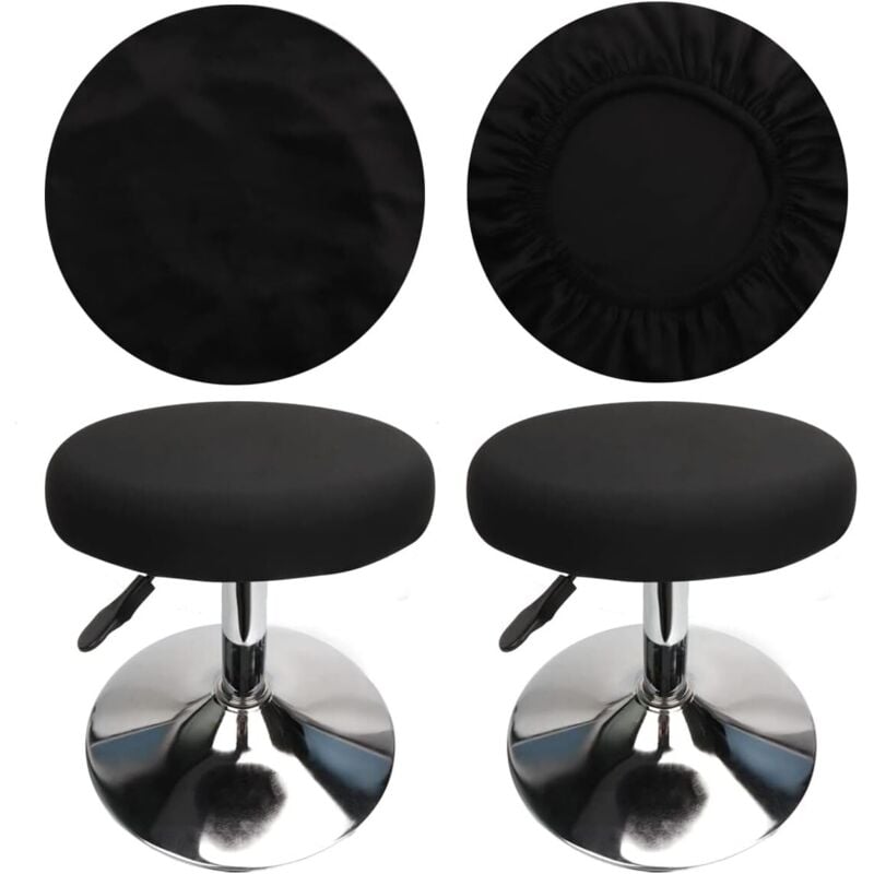 Housse Tabouret Rond Housse Tabouret de Bar, Tissu de Luxe, Diamètre 30cm, Extensible, Infroissable, Lavable et Anti-Poussière (2 Pièces Noir)